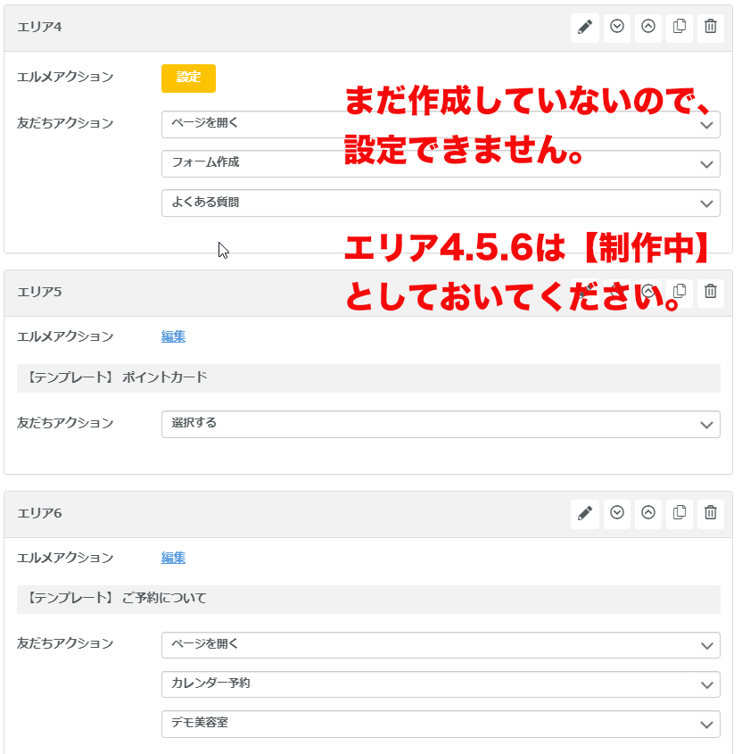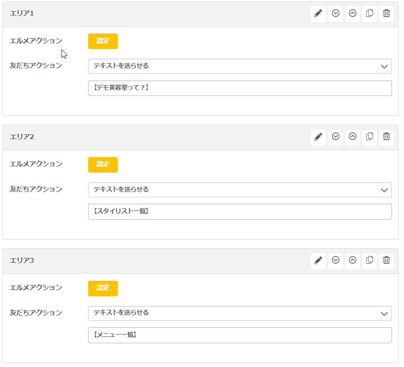 作成したリッチメニューのエリアにボタンを設置する事ができます。