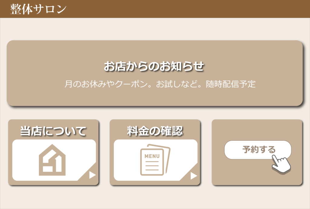 メニューバーの文字を設定することが出来ます。「メニュー」だけでも良いですが、このテキストを変える事でお客様の反応率が変わります。